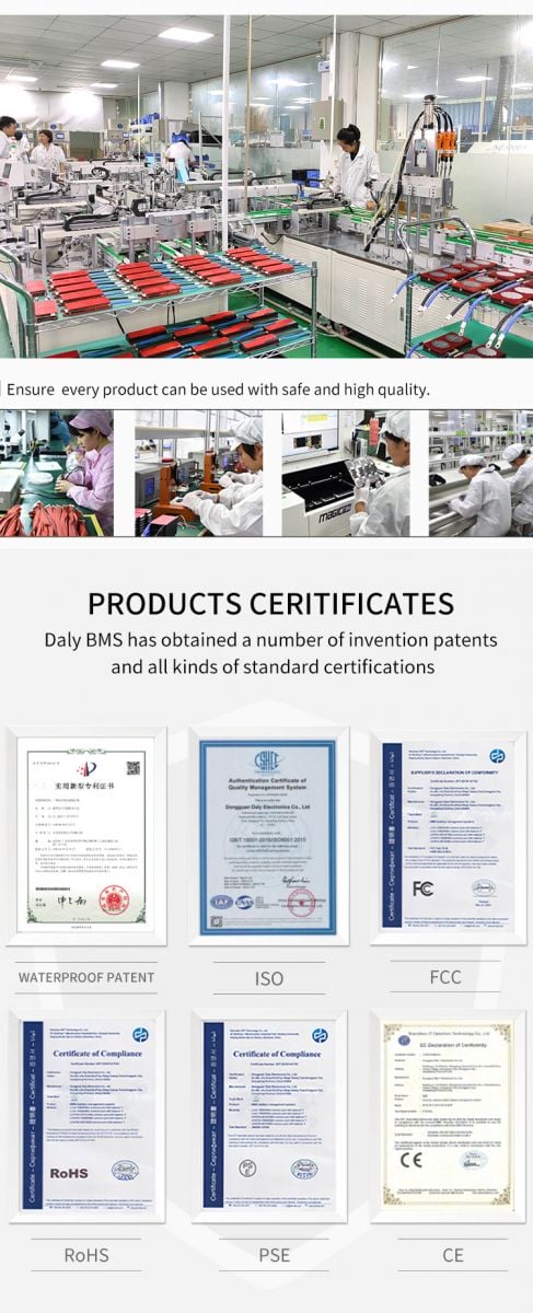 Daly has a high-quality R&D, production and management team with rich professional theoretical knowledge, product design and production management experience. The company also has several senior engineers and senior experts who specialize in the battery management system (BMS) industry for more than ten years. They are dedicated to product research and development, and have participated in the preparation and preparation of lithium battery technology series. [Lithium Battery Management System Detailed Explanation], [Lithium Battery PACK Daquan and industry related national standards (GB). The company has a complete standard testing laboratory, dozens of lithium battery protection board testing, aging, reliability testing equipment, providing reliable quality assurance for product testing and inspection.
