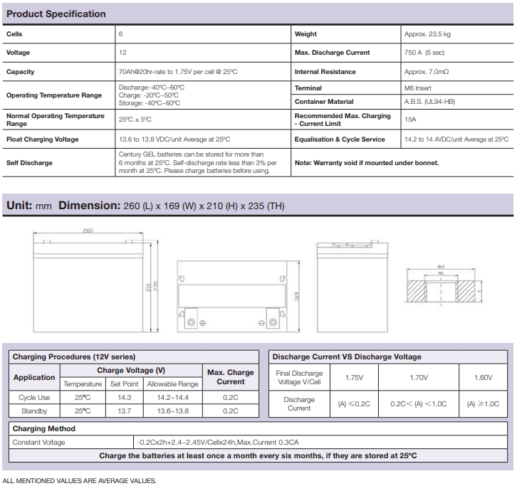 The Century Gel Deep Cycle Range incorporates advanced Gel electrolyte technology which