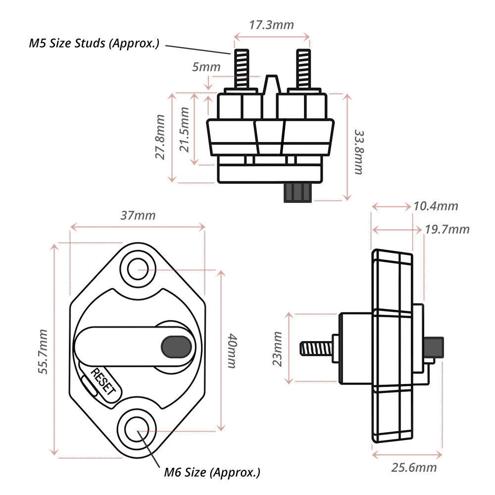 Exotronic 20A Mini Panel Mount Waterproof DC Circuit Breaker