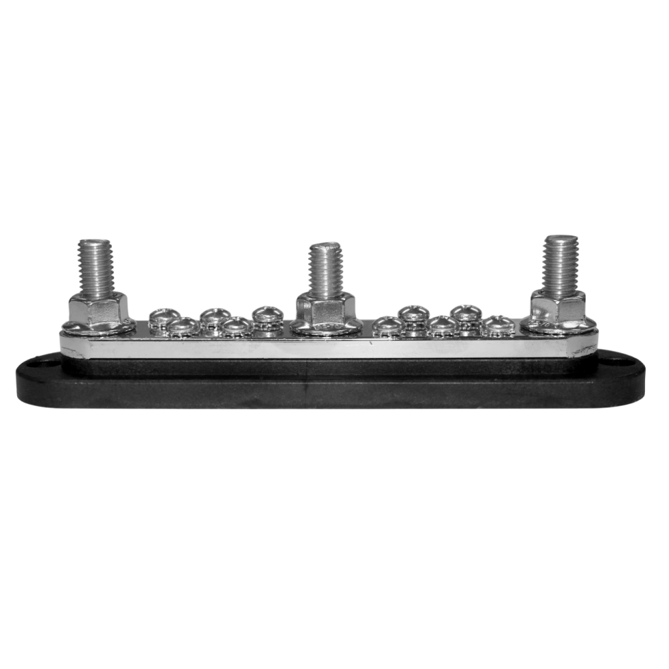 - 3x M10 Stud Connection Points: Provides flexible and secure connections for both positive and negative leads in intricate battery and solar power setups.