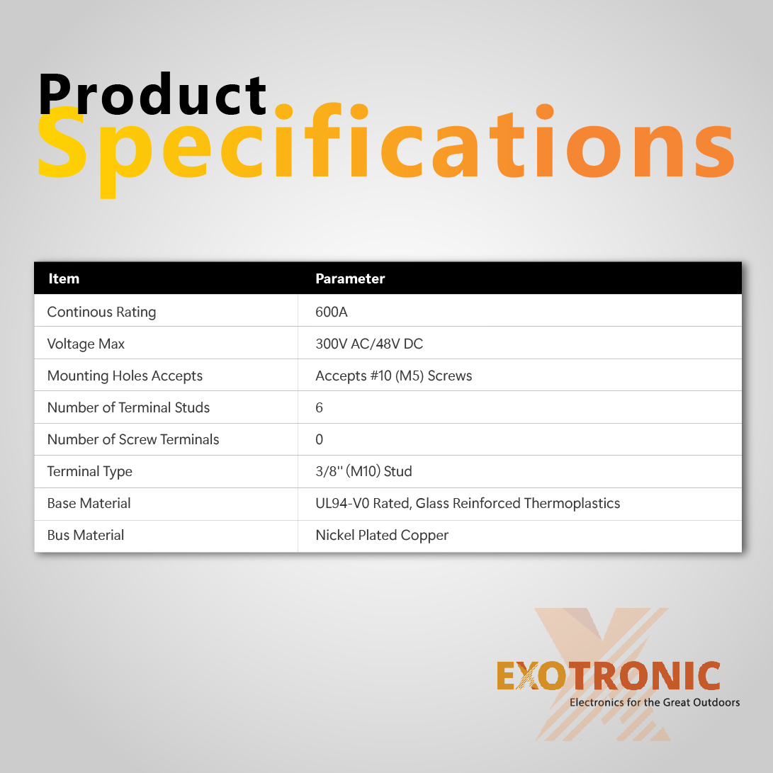 Ideal for setting up a comprehensive battery busbar system, managing intricate positive busbar configurations in vehicles, or optimizing marine and renewable energy systems, the Exotronic busbar stands out in the market. Its robust design, coupled with high-quality, marine-rated materials, ensures it meets the demands of advanced electrical installations.