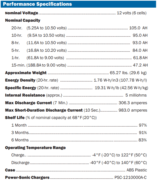 Power-Sonic 12V 105Ah AGM Deep Cycle Battery