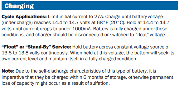 PG Series 24 months when used in standby applications 12 months when used in cyclic applications if average depth of discharge does not exceed 50% 6 months when used in mobility applications (including but not limited to wheelchair, electric scooter, pallet jack, golf buggy)