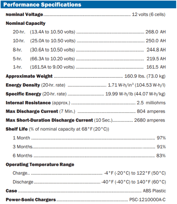 Power-Sonic 12V 268Ah AGM Deep Cycle Battery