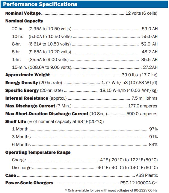 Power-Sonic 12V 59Ah AGM Deep Cycle Battery