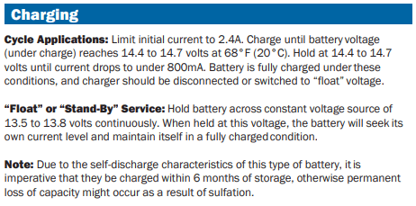 PG Series 24 months when used in standby applications 12 months when used in cyclic applications if average depth of discharge does not exceed 50% 6 months when used in mobility applications (including but not limited to wheelchair, electric scooter, pallet jack, golf buggy)