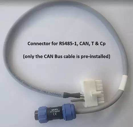 - "CAN" has a 0.5metre cable to a Weipu Series 13 connector (note that mostly inverters and controllers use an RJ45 connector for their CAN Bus, however as there is no industry standard pin-out for the RJ45 this leg of the CAN Bus cable is a separate purchase)