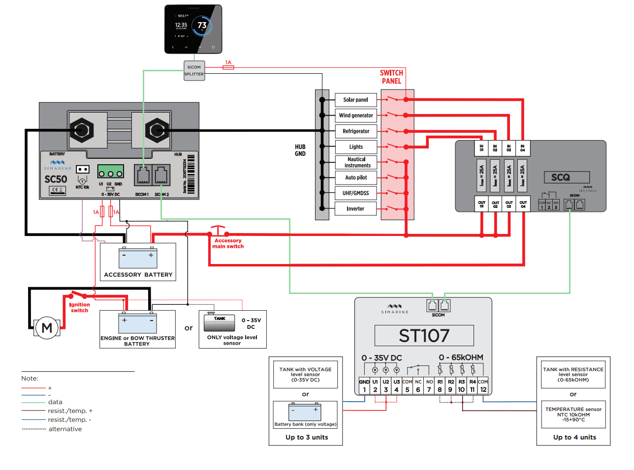 - ST107 Tank Module 3x Voltage & 4x Tank Level/Temperature + 4m SICOM Cable