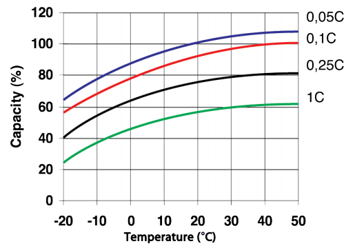 As is shown by the graph below, capacity reduces sharply at low temperatures.