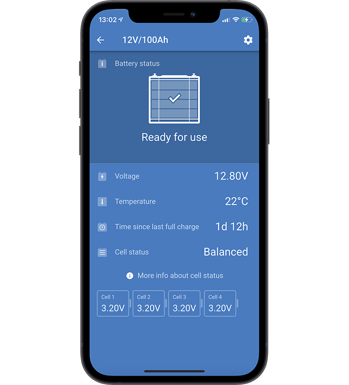 - Real-Time Data: With integrated Bluetooth, monitor cell voltages, temperature, and alarm status directly through the VictronConnect App without needing to physically connect to the battery.