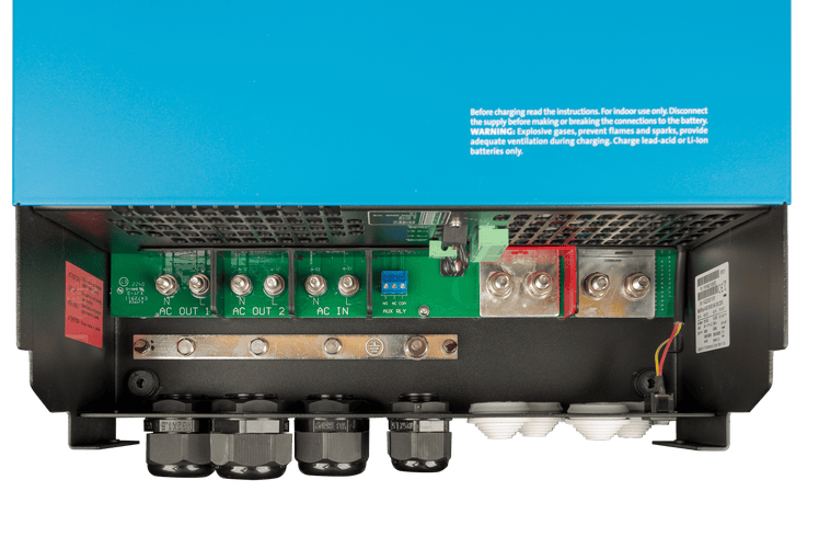 The MultiPlus-II comes with two AC outputs, allowing for strategic power distribution. The primary output ensures continuous power supply, while the secondary output can be used for non-essential appliances, optimizing battery usage and prolonging the system's overall efficiency.