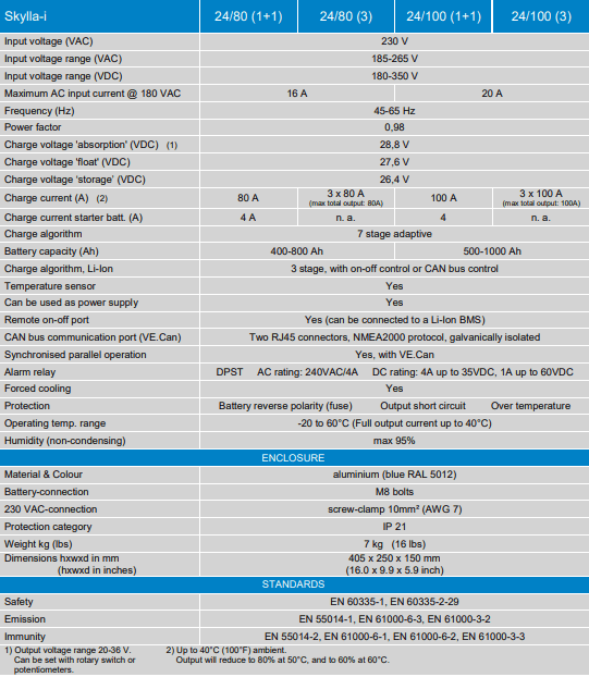 Victron 24V 80A Skylla-i 24/80 (1+1) 230VAC/45-65Hz Battery Charger
