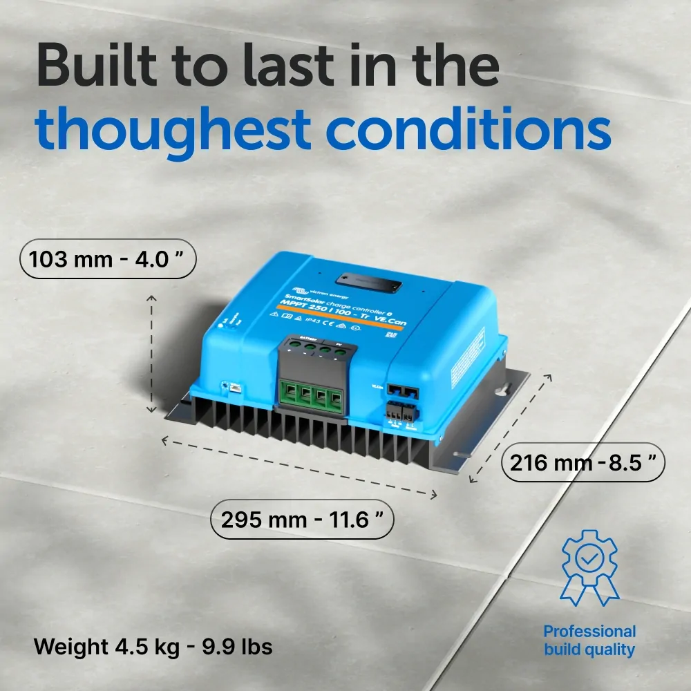 Whether you’re powering a caravan, marine craft, RV, industrial system, or a tiny home, the Victron SmartSolar MPPT 150/100-Tr VE.Can charge controller provides unmatched performance, flexibility, and ease of use. Its ultra-efficient solar harvesting, smart shading detection, and expansive monitoring capabilities make it the superior choice for both residential and commercial off-grid solar systems.