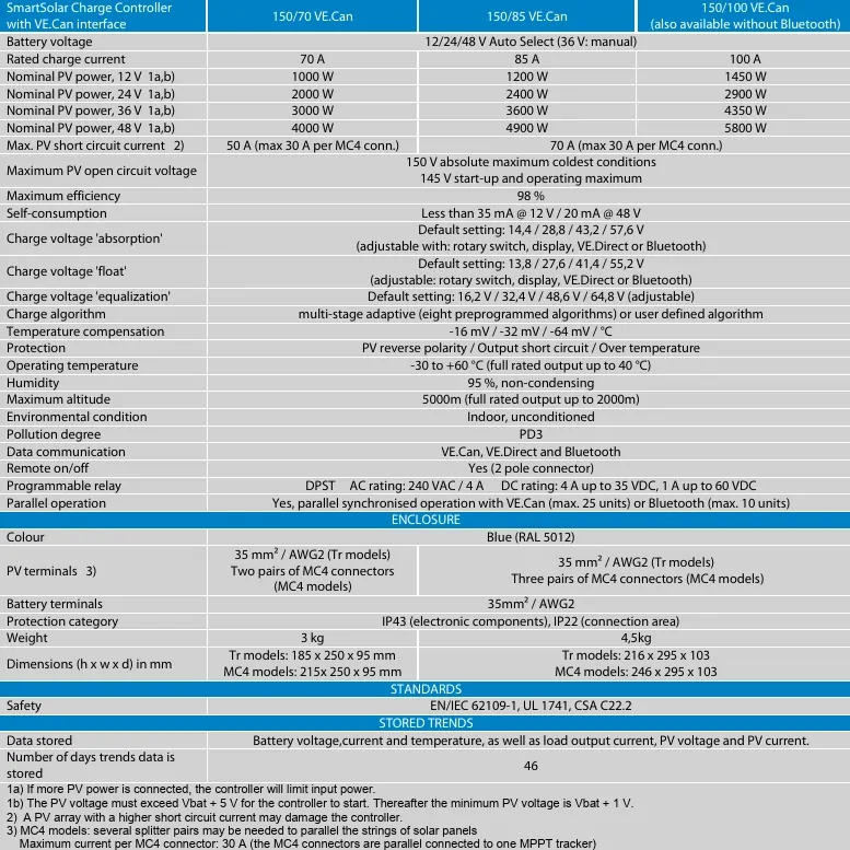 | SmartSolar Charge Controller | 150/70 |